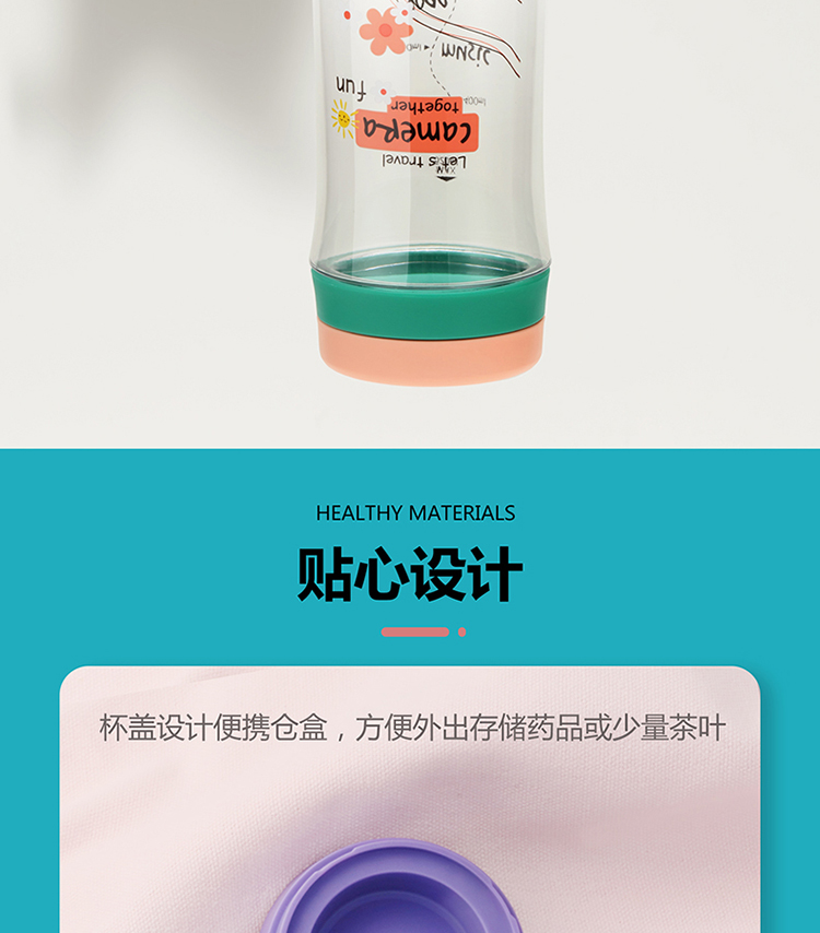 采用美国进口的Tritan材质,不含双酚A,对人体健康安全,使用起来安全可靠,婴幼儿奶瓶也会使用这种材质。