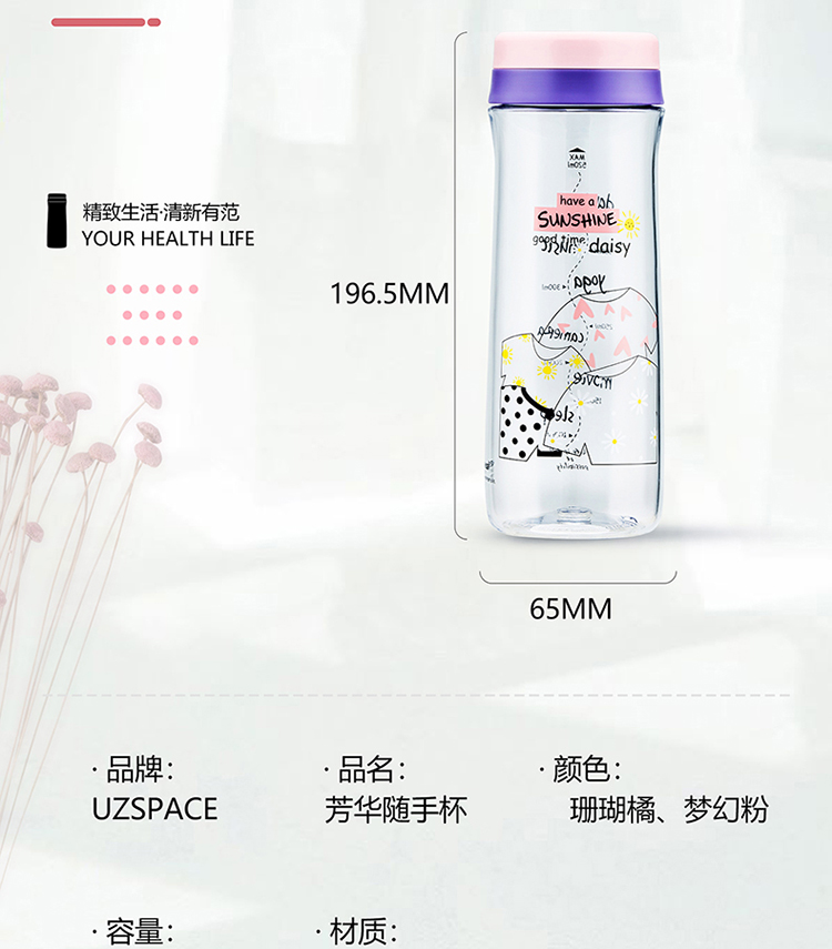优之(UZSPACE)简约清新女生随手杯便携tritan水杯