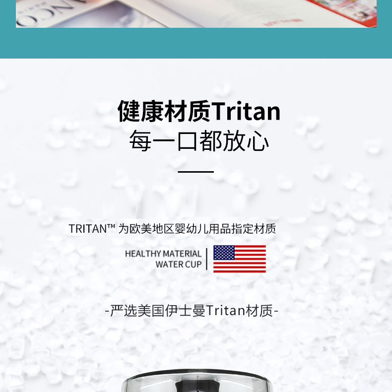 1、材质安全:采用进口的 Tritan 材质,为欧美地区婴幼儿用品指定材质,不含双酚 A,使用中不会释放有害物质,孕妇婴儿均适用。
