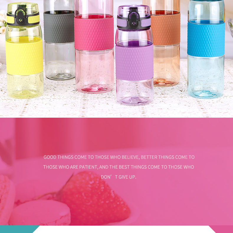 4、防漏设计:采用锁扣等结构,封闭严实,倒置或摇晃都不会漏水,方便携带,可放心放在书包、车上等场所。