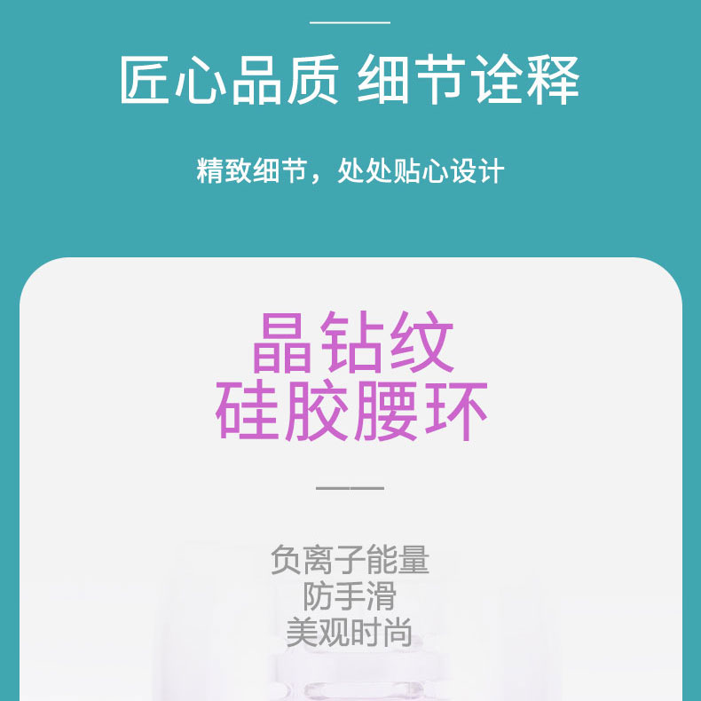 2、设计美观:晶钻纹硅胶腰环设计,不仅使杯子具有独特的钻石般闪耀质感,还起到防滑、防烫的作用,提升了杯子的美观度和实用性。